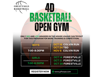 *Must be registered to play GF Hoops winter house league to be eligible to tryout for the 4D team. *Registration for 4D tryouts is free.